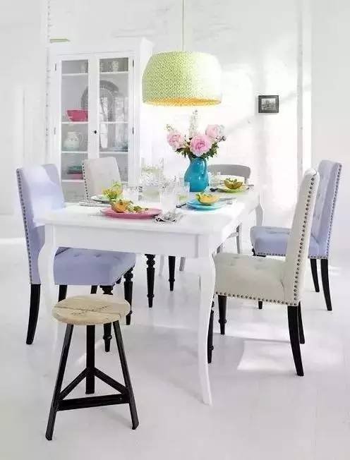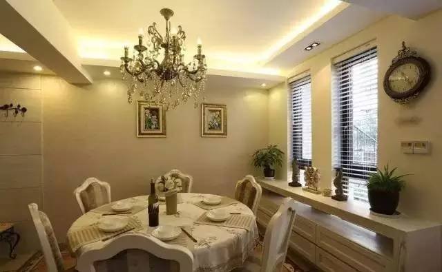 欧式田园风格主要讲究华贵优雅,又不失清新温暖。在餐厅设计方面主要注意整体颜色的搭配,以暖色调烘托整个环境,色彩不宜相差过大,一般鹅黄色和米白色是比较经典的搭配。另外选择一套浓郁的欧式田园风格餐桌套装可起到画龙点睛之效。