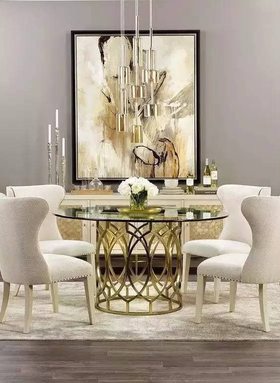 欧式餐厅设计主要以精美的印花和雕花为主打,配以简洁的线条组合,更显自然与流畅。地面建议铺设花纹地毯,把整个地面的欧式效果突显出来,与墙壁和餐桌的花纹遥相辉映。