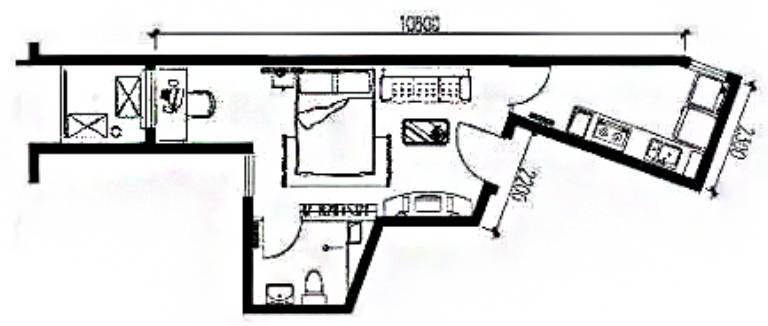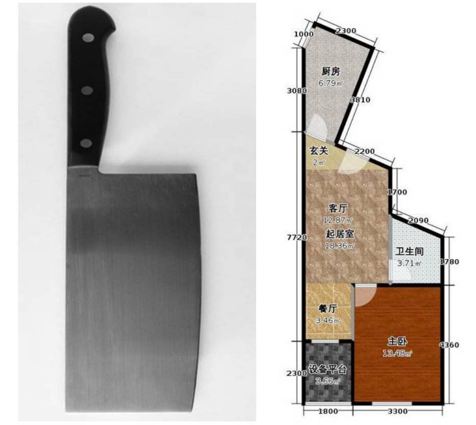 还有这样一种神似苏联第一代突击步枪AK47的奇葩户型。细心的朋友会发现,其实这个户型完全是上面菜刀户型的升级版。