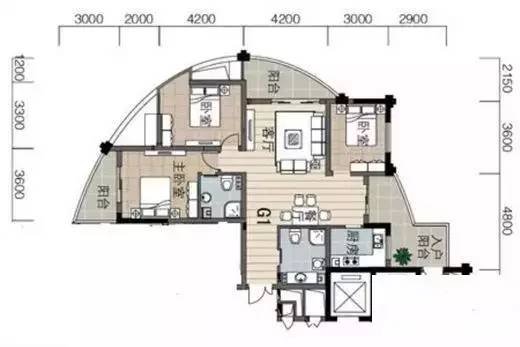 买了这样房子的朋友们,要么选择独自消化这个户型弧度带来的不便,要么就赶紧请个设计师,好好规划一下这个“奇葩”空间吧。