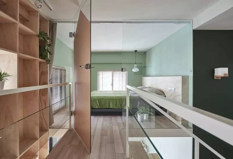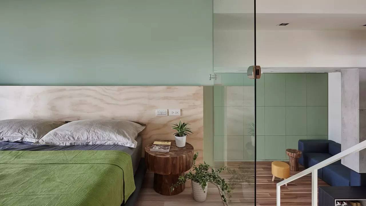 ▲楼上是卧室,淡绿色的空间色调有助于放松心情,快速入眠。