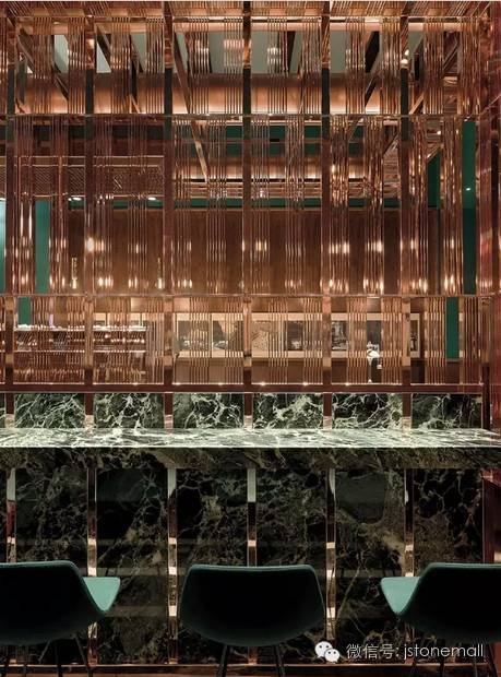提示:↑点击“石材家装”订阅关注,查看更多精彩内容我们几乎可以在任何公共场所看到大理石的身影,外墙干挂、室内墙面、地面、围栏、圆柱、台面、浴缸等等。但,一枝独秀的完美建筑装饰很少,除了石材与石材的同质搭配,石材与其他装饰材料的组合也造就许多惊艳,简直就是百搭的材料。01/大理石+金属这个项目最出