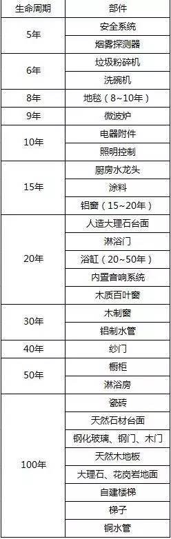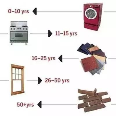 如:垃圾粉碎机约6年、洗碗机约6年、微波炉约9年